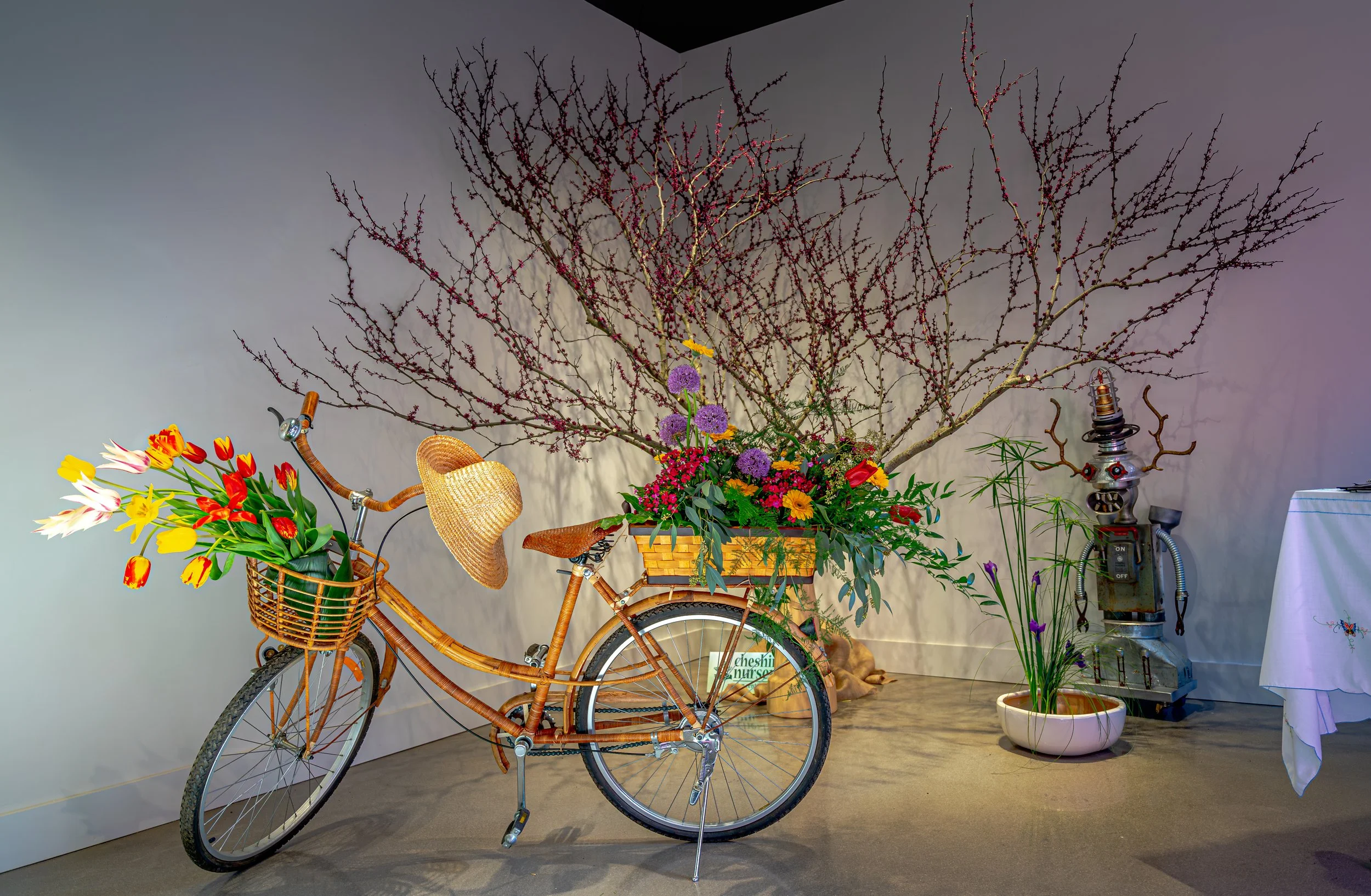 The artistry of Sylvia Nichols AIFD, blossoms into life at this captivating gallery event. Merging the vibrant hues, familiar fragrances, and the exuberant spirit of spring’s flora with the raw, industrial backdrop of Ball and Socket Arts, this exhibition symbolizes the dynamic evolution of the gallery space. As visitors stroll through this burgeoning garden, they encounter a celebration of artistic expression in its myriad forms. Each piece, meticulously designed by the artist, communicates directly to the viewer, evoking the essence of spring—a time of hope, rejuvenation, and boundless possibilities. The floral narratives resonate, stirring the senses, and unfurling an ever-evolving canvas that reflects life’s delicate balance and the relentless courage to flourish anew.